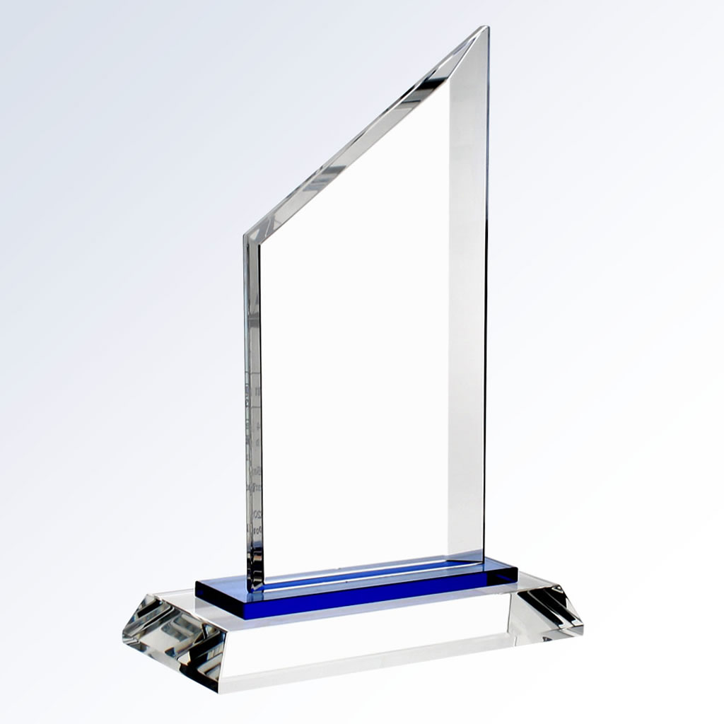 A nautical-inspired colorful crystal award in blue with a flowing modern design for distinctive corporate recognition.