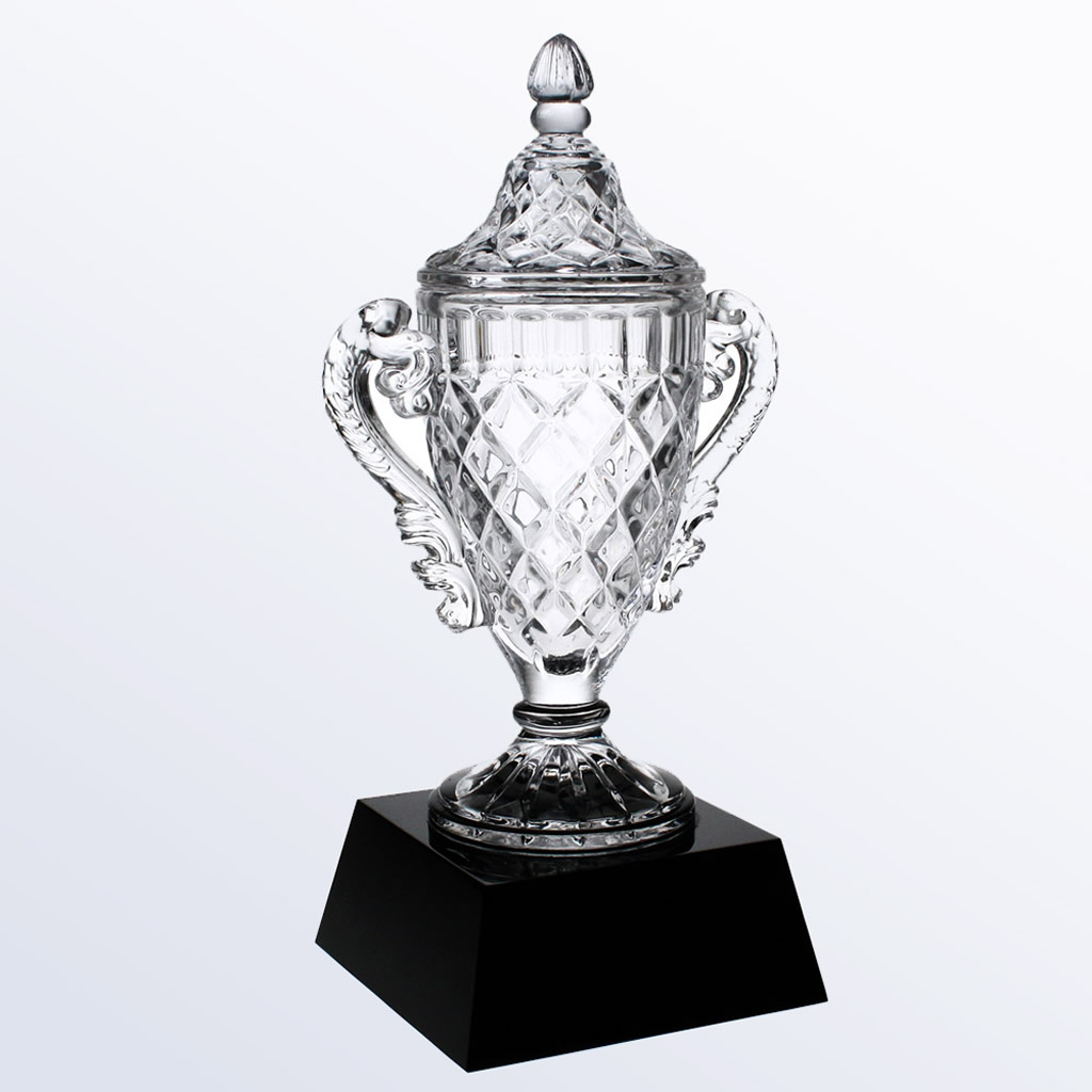 A triumphant crystal award crafted to honor championship performance and top-tier achievement.