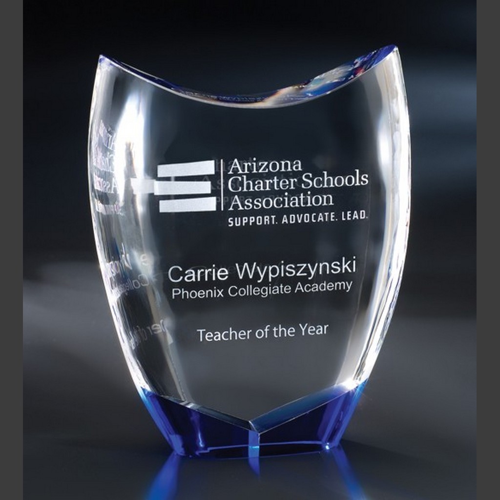 This colorful crystal award is expertly crafted from optical crystal, providing exceptional clarity and a polished engraving surface for personalization.
