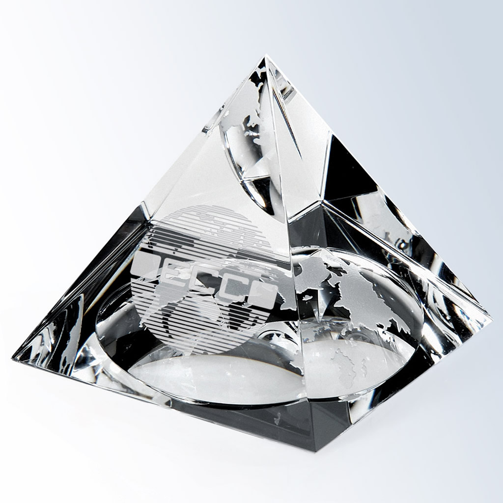 The Globe Pyramid is a unique personalized recognition gift that blends modern design with global symbolism.