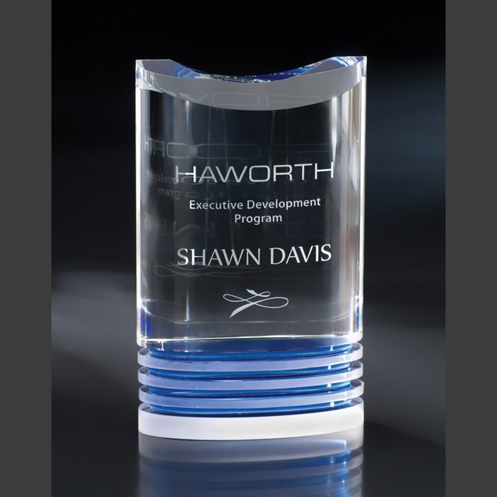 This colorful crystal award offers brilliant clarity and a polished finish that enhances engraved personalization. Names, logos, and achievement messages stand out with precision.