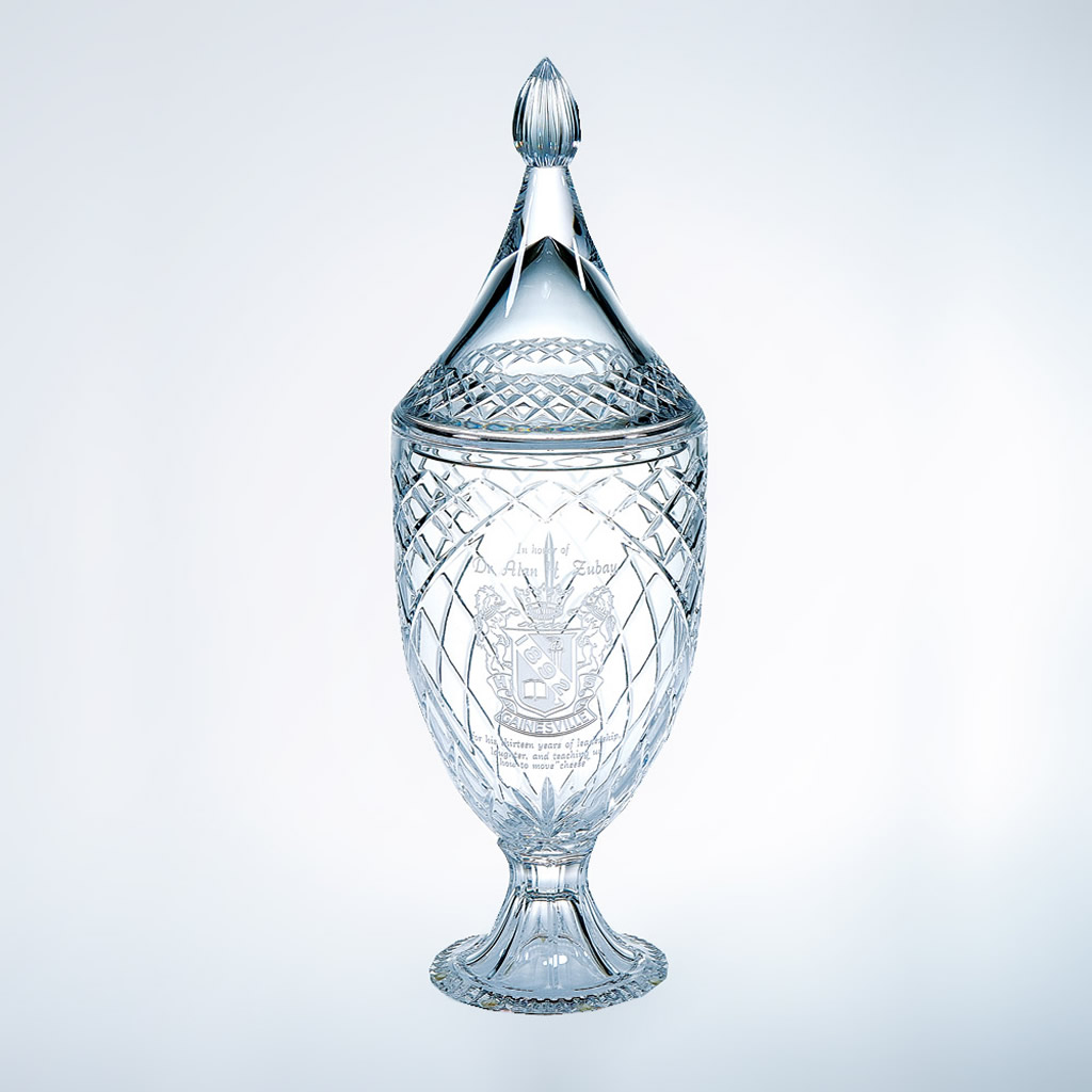 The Michelangelo Vase is crafted from lead crystal, offering remarkable brilliance and refined design.