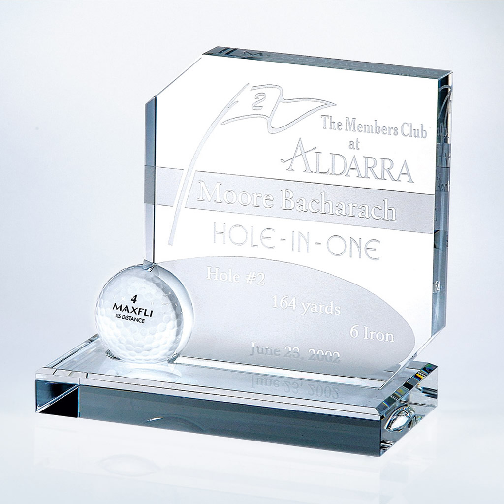 This engraved golf recognition award serves as a lasting keepsake of an extraordinary shot on the green.