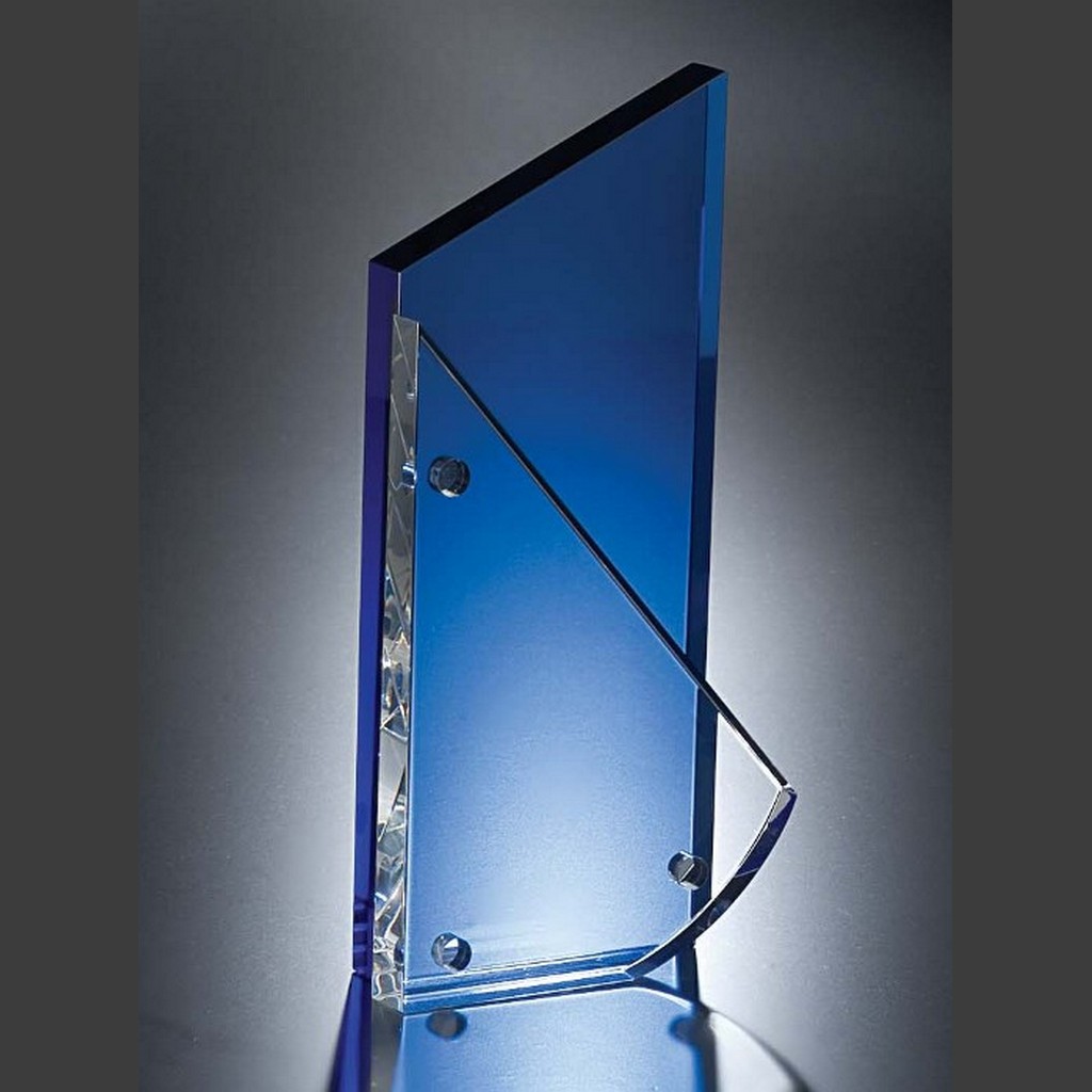 A sophisticated colorful crystal award with a strong modern design, perfect for prestigious corporate recognition.