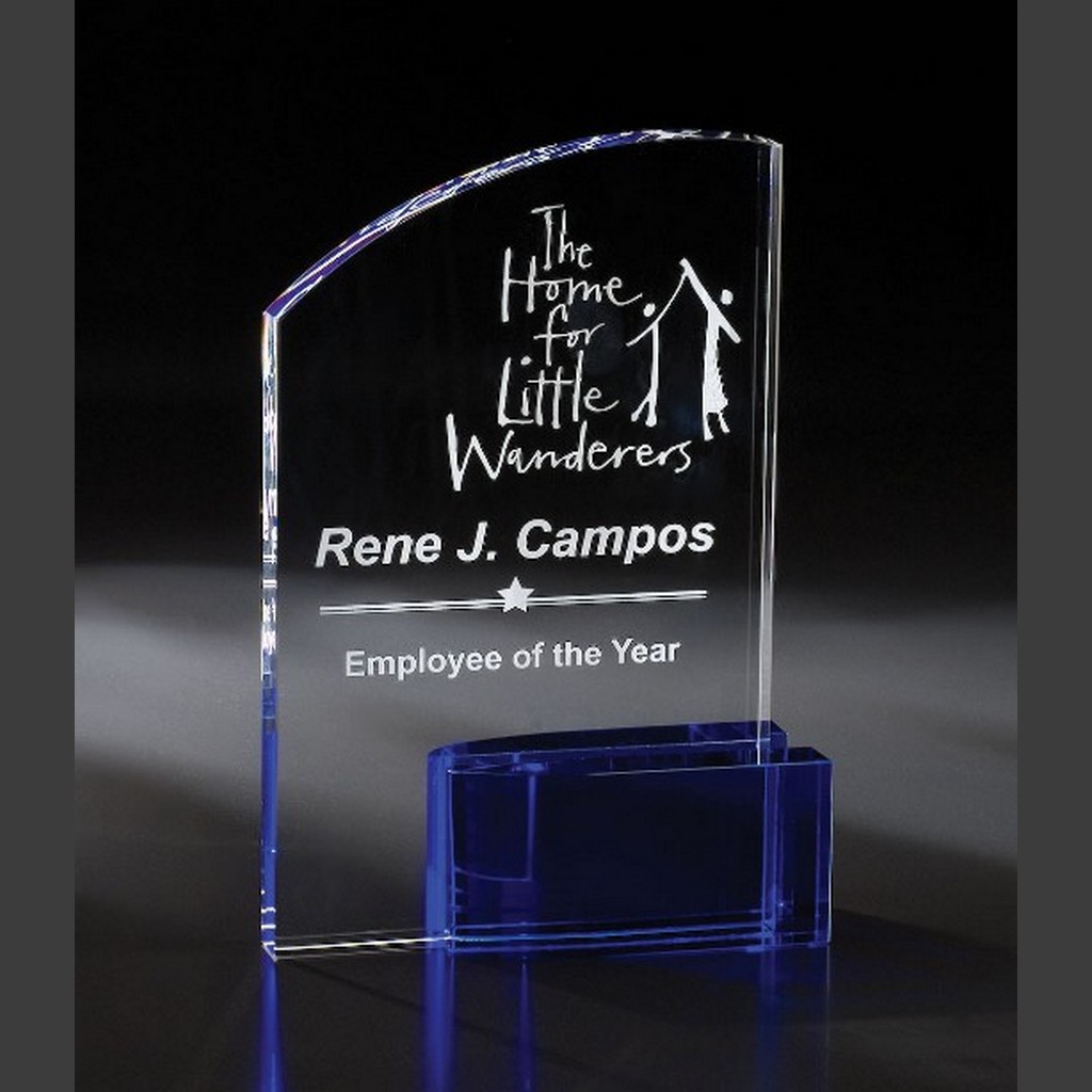 The Serenata Crystal Award (Blue) blends soothing color with refined shaping to create a colorful crystal award that feels both artistic and professional. Its modern design offers a graceful profile suited for high-end corporate recognition events.