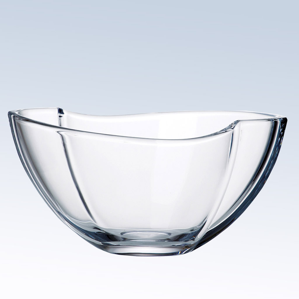 A gracefully curved lead-free crystal bowl designed for sustainable executive recognition and corporate gifting.