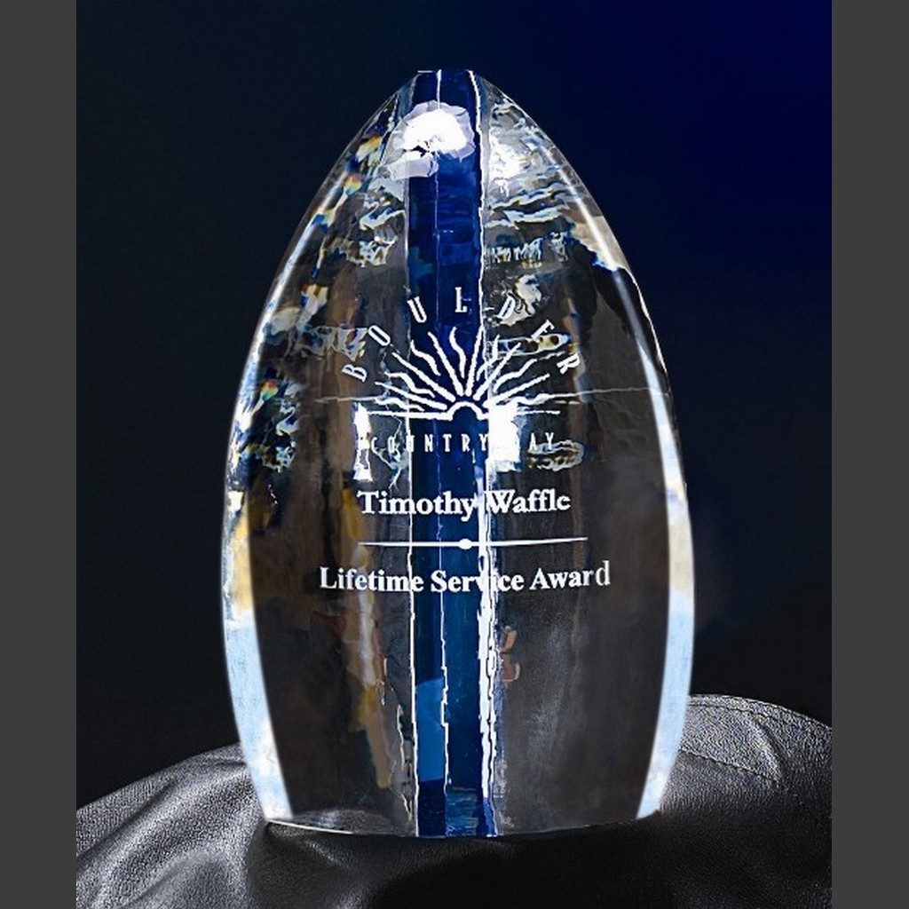 With its refined modern design, the Solitude Crystal Award in Blue is a crystal recognition award that reflects lasting appreciation.