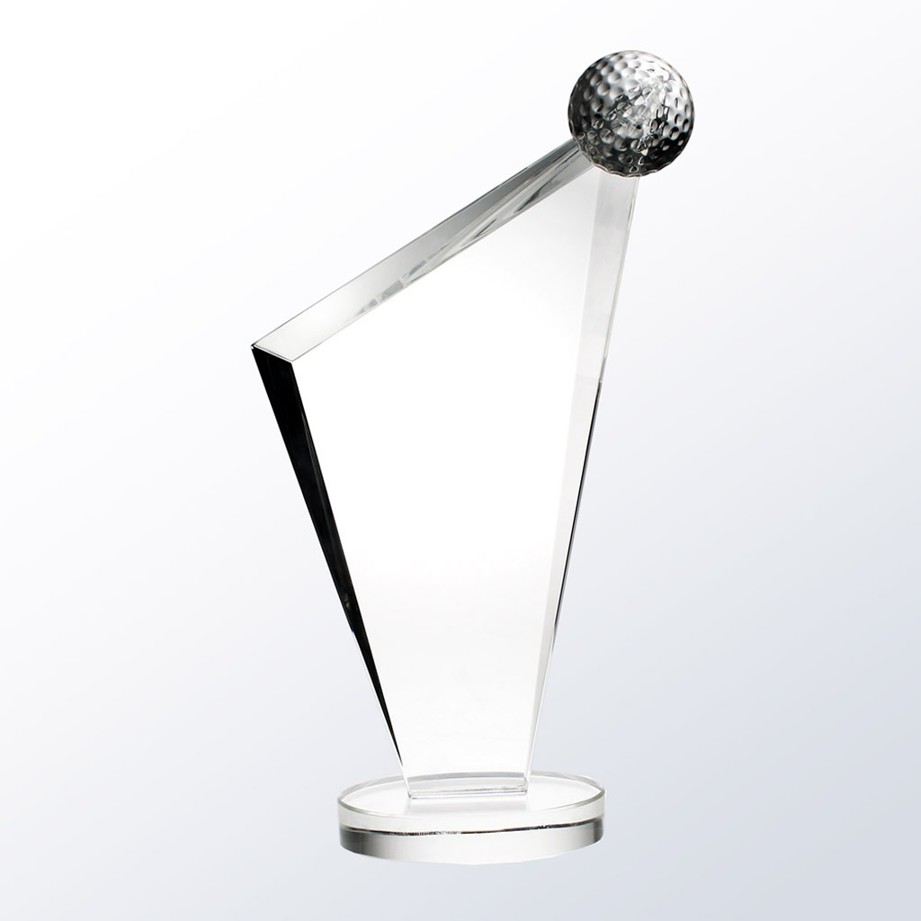 Crafted from premium optical crystal, this modern design offers brilliant clarity and engraving space for personalized corporate golf outing awards.